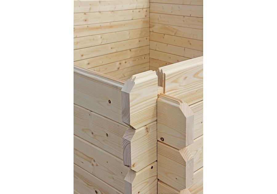 Kuća je veoma čvrsta i stabilna jer je izrađena od profiliranih, fino obrađenih smrekovih daski debljine 34 mm.
