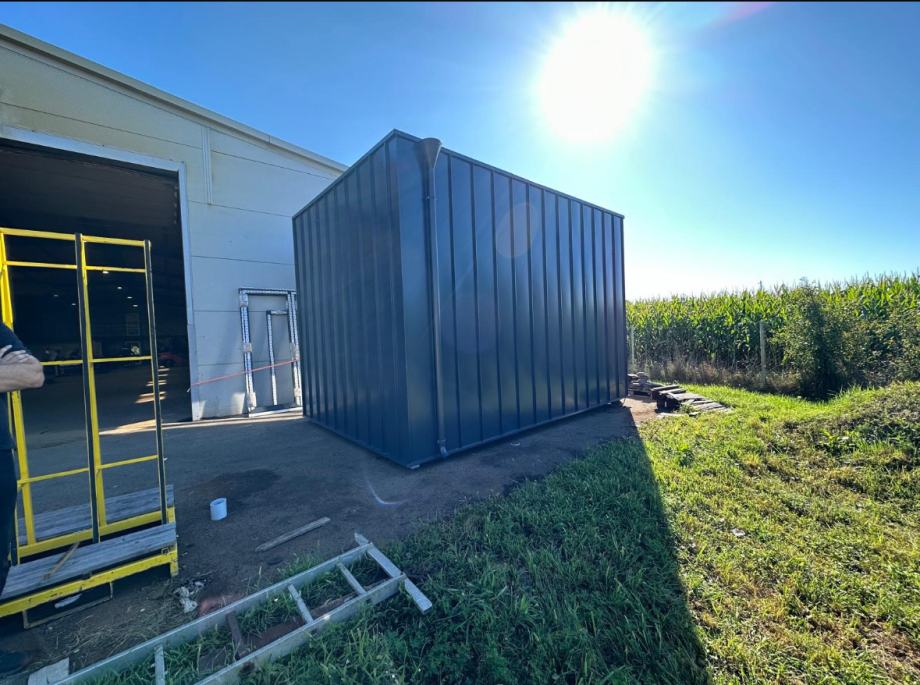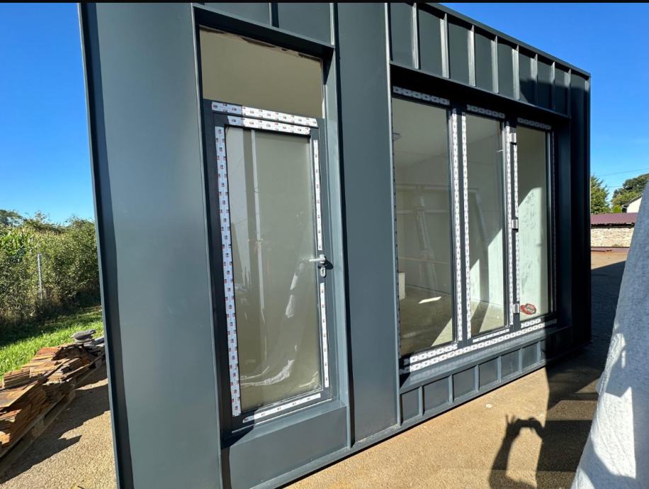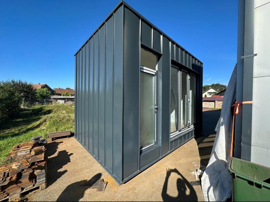 Čelična konstrukcija , sendvič paneli obloženi falc limom , krov izolacija Sika , ALU stolarija harmo vrata , unutrašnjost objekta obložena u Knauf , sprovedene instalacije .