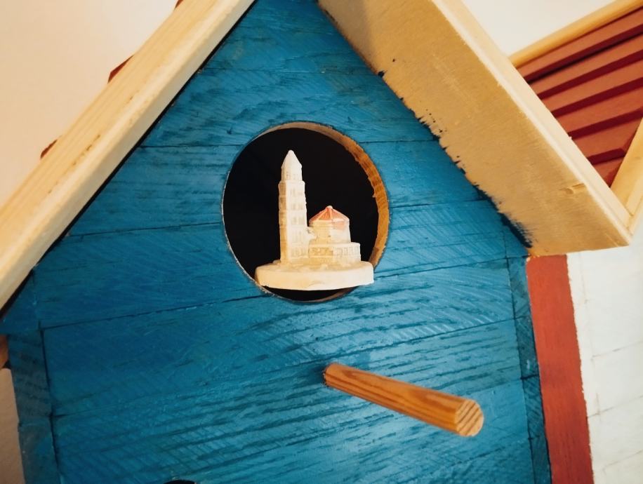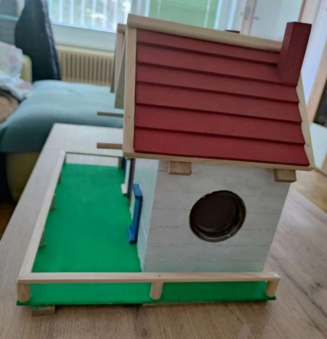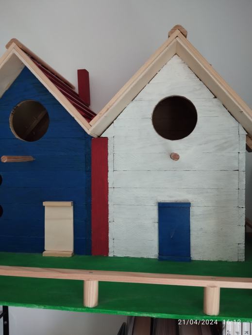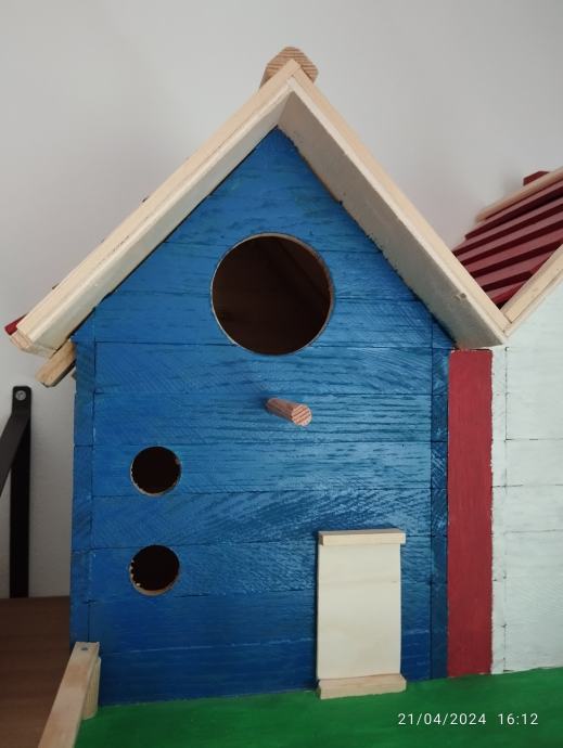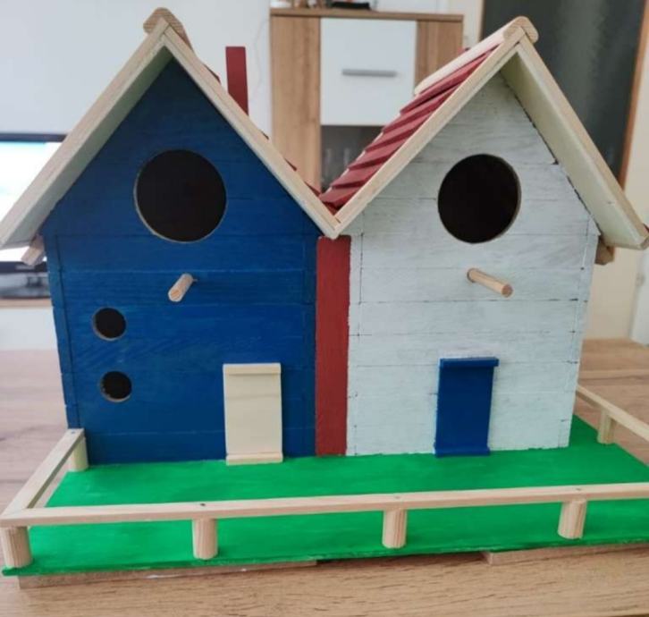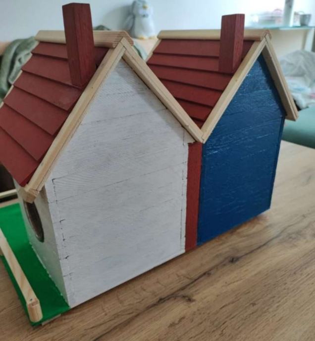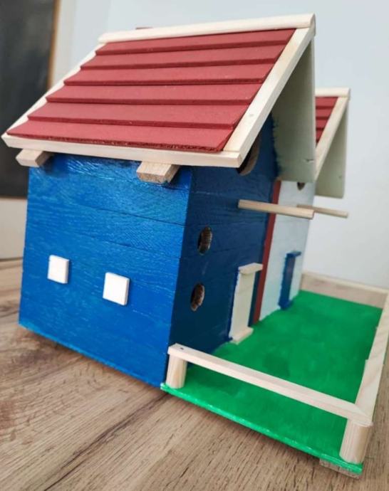 Ručno izrađena velika kućica za ptice od tvrdog hrastovog drveta, premazana zaštitnom bojom.