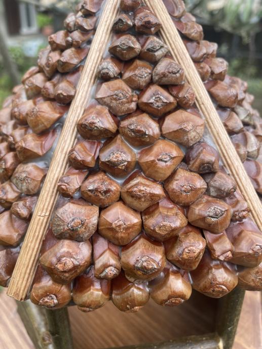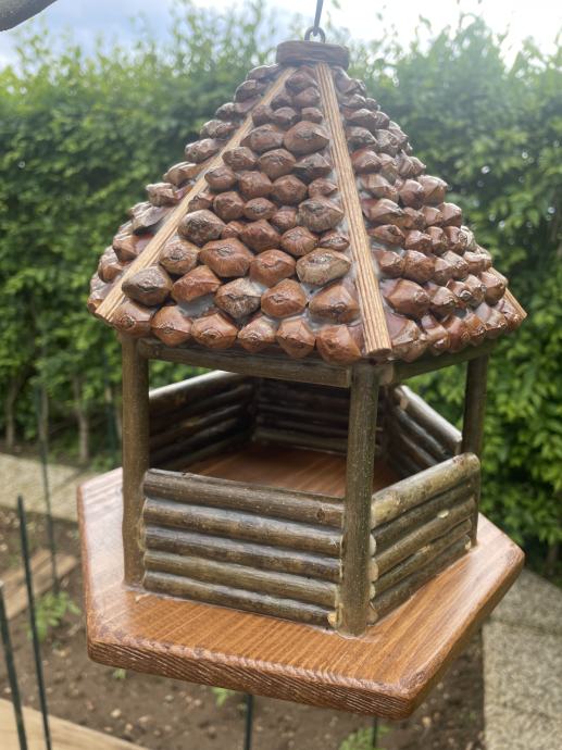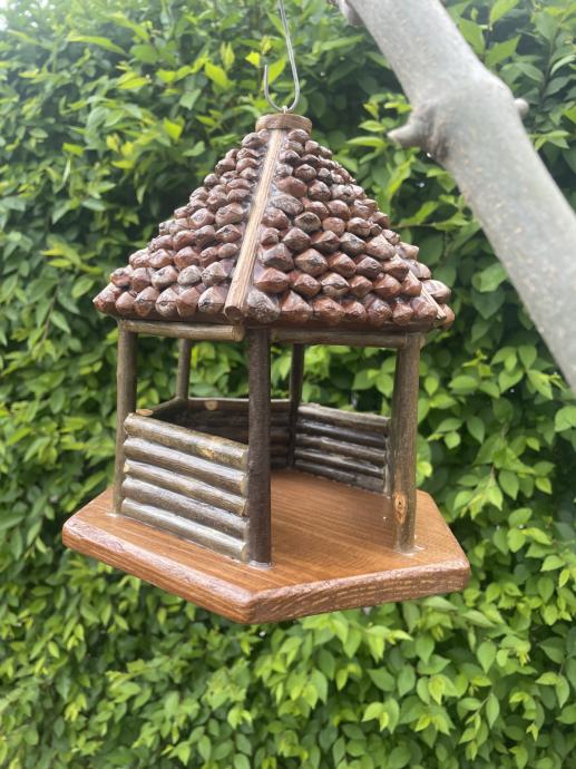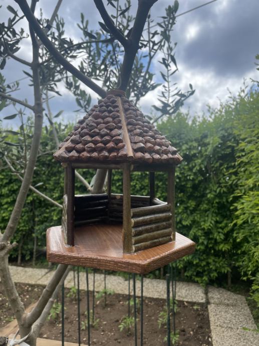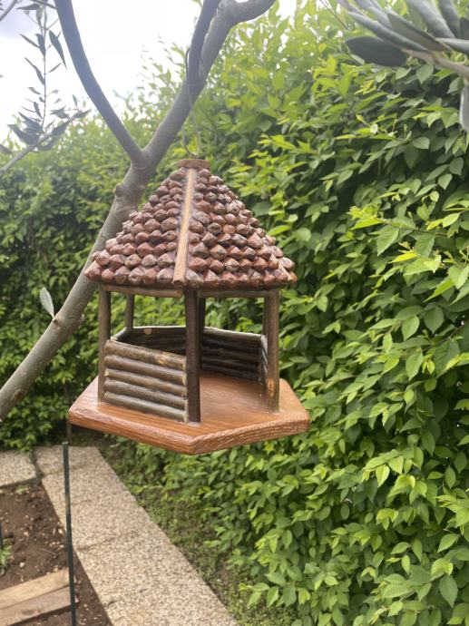 Prodajem kućicu za ptičice , krov prekriven pinjolima , svlaki pinjol ručno obrađen, zaštićena od vlage i vremenskih utjecaja. Krov ispod pinjola prekriven krovnom nepropusnom ljepenkom.