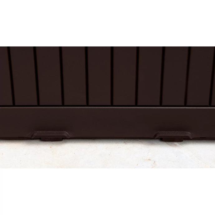 Plastična kutija za odlaganje raznih predmeta (jastuci, vrtni alati ...) tvrtke KETER. Prednost ove kutije je jednostavna instalacija (bez upotrebe alata - sve možete sastaviti u kompletu), visokokvalitetna kutija i moderan dizajn. Materijal ima UV zaštitu i otporan je na nepovoljne vremenske uvjete.