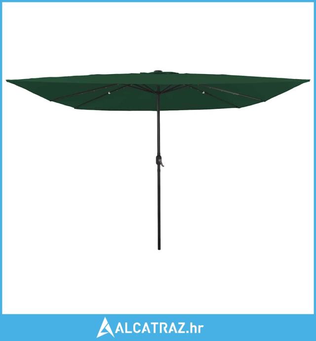 Kvadratni vrtni suncobran s LED svjetlima 295x245 cm Zelena - NOVO
