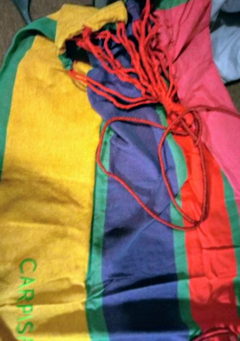 Predivna ležaljka koja je spremljena u svoju torbicu. Predivnih boja, limitirano izdanje. Copy/paste stil Benettona. Složite je između 2 drva, 2 stupa.....