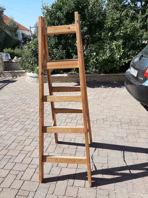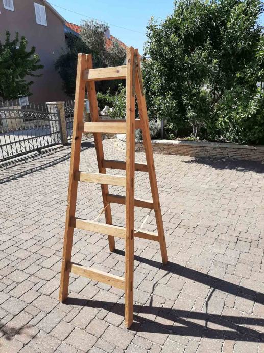 Prodajem ručno rađene kvalitetne drvene stabilne ljestve sa pet gazišta, u odličnom stanju. Zbog lijepog izgleda mogu poslužiti i kao police.