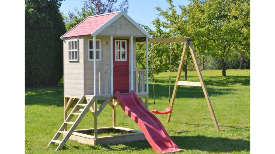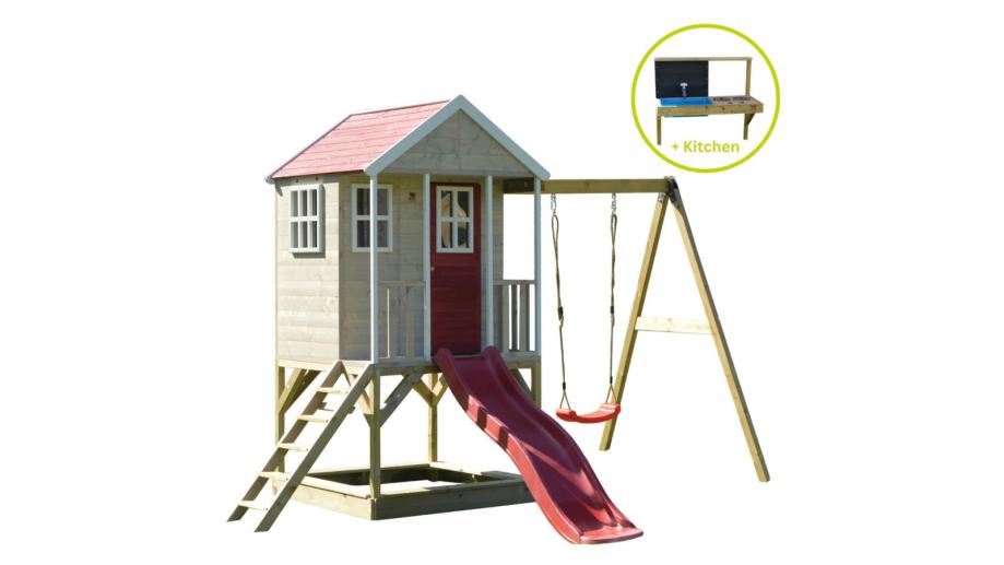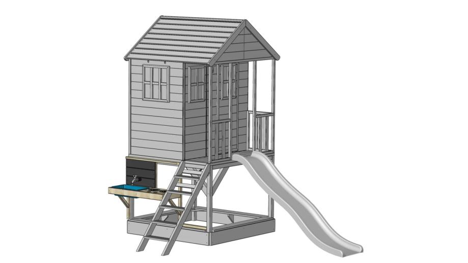 Izgrađena na platformi visokoj 90 cm, ova kućica za igru osmišljena je kako bi vaše dijete bilo aktivno i angažirano. Ispod platforme nalazi se pješčanik, savršen za vaše mališane da grade pješčane dvorce i istražuju svoju kreativnost. Ispred kućice za igru nalazi se priloženi plastični tobogan dug 175 cm, koji će zasigurno pružiti sate uzbudljive zabave.