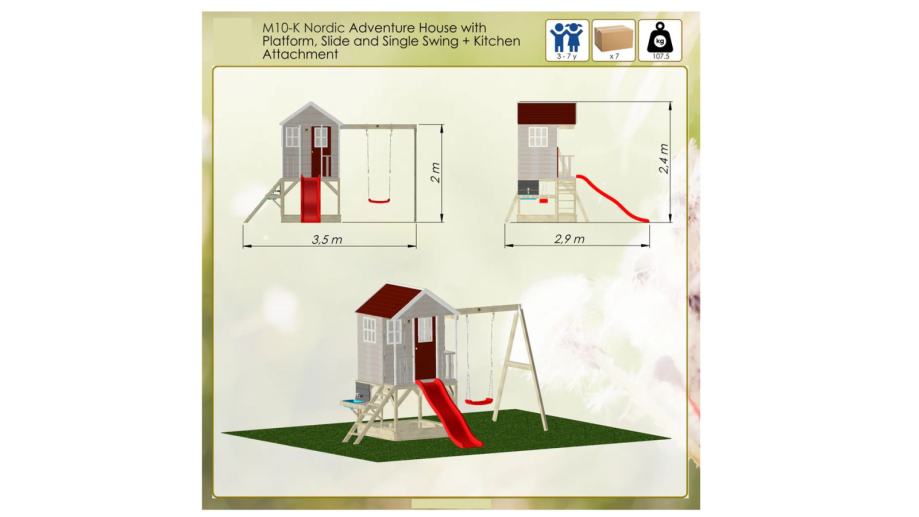 M10R-K Kućica s platformom, toboganom i jednom ljuljačkom + dodatak za