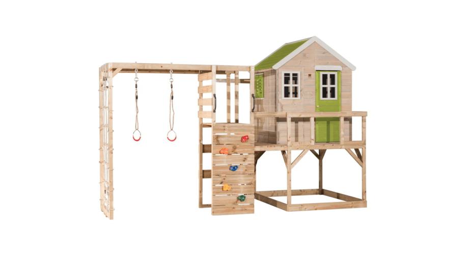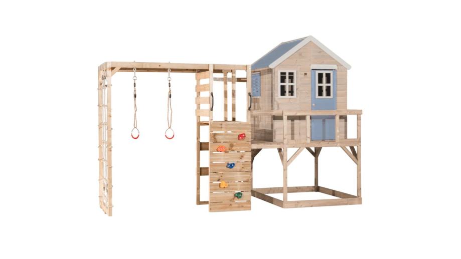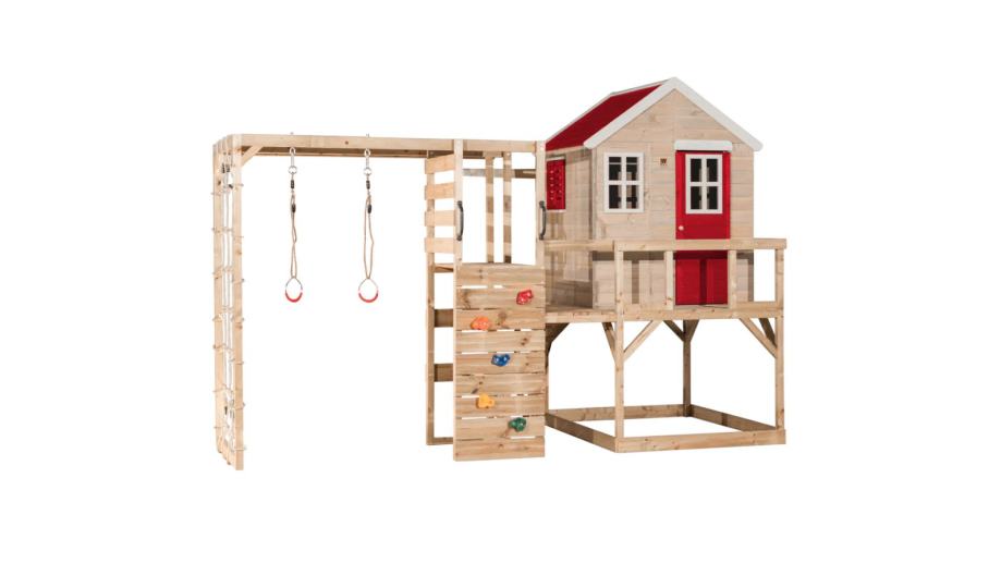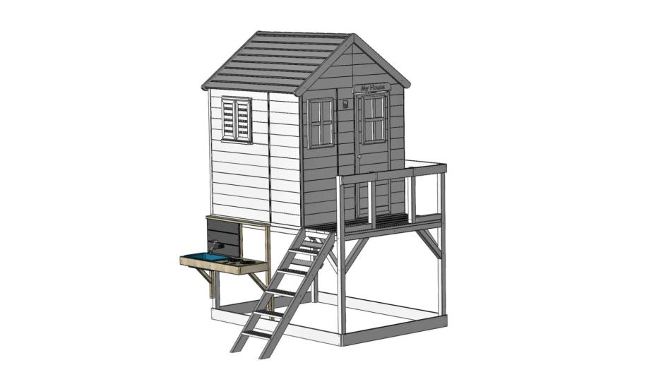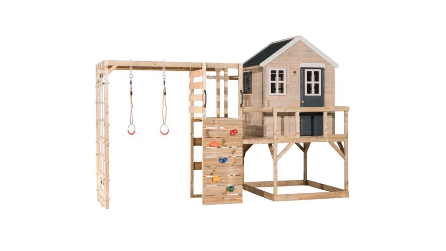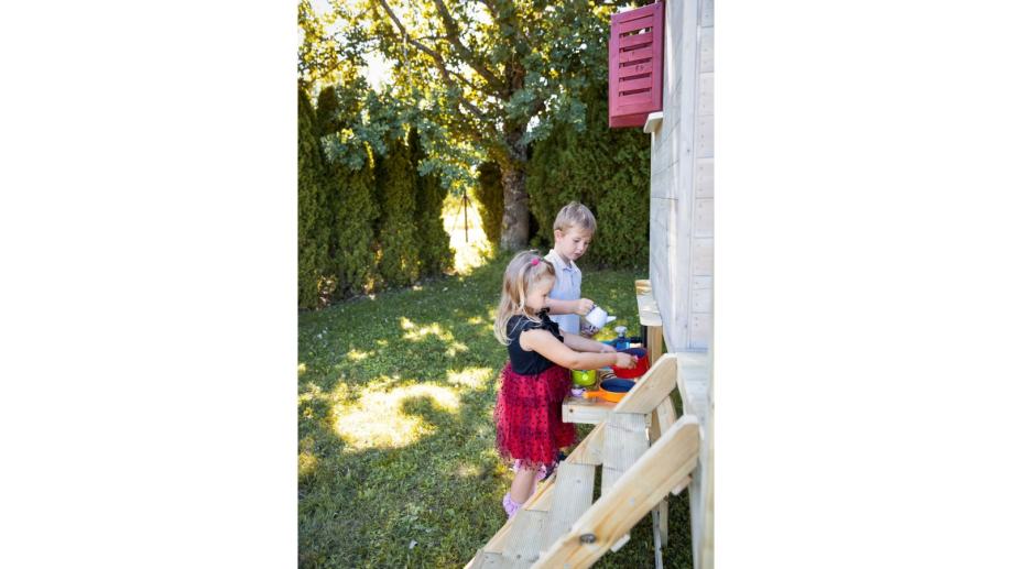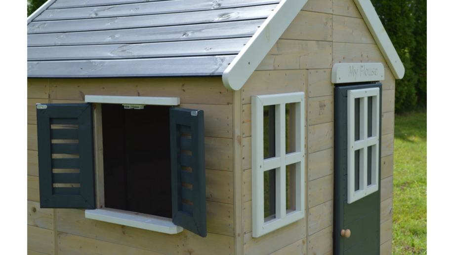 Ova kućica za igru iz serije My Lodge ima dva zatvorena prozora i puna vrata sa sigurnosnim pleksiglas plastičnim staklom kako bi kućica bila svjetlija tijekom dana. S jedne strane kućice za igru nalaze se elegantne kapci koji se mogu otvoriti kako bi se u igralište ušlo više svježeg zraka ili zatvoriti kako bi se dobila veća privatnost. Ova kompletna kućica idealna je za vanjsku upotrebu jer vodootporni krov osigurava da je igralište unutra uvijek suho. Izgrađena na platformi visokoj 90 cm, ova kućica za igru dizajnirana je kako bi vaše dijete bilo aktivno i angažirano.