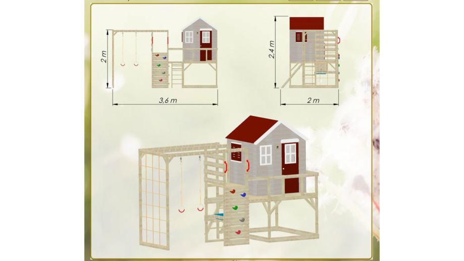 Kućica za igru izrađena je od visokokvalitetnog FSC certificiranog drva, izdržljiva je i ima vrlo stabilnu strukturu. Sigurnost vaše djece osigurana je visokokvalitetnom izradom i zaobljenim rubovima. Ova dječja kućica za igru ima unaprijed sastavljene i ojačane drvene ploče koje sprječavaju propadanje i smanjuju vrijeme sastavljanja. Kućica za igru nije prikladna za djecu mlađu od 3 godine! Preporučuje se godišnje prebojati kućicu kako bi izgledala kao nova. Sve informacije možete dobiti na broj: +385 99 349 4444 ili putem e-maila: david@findom.hr