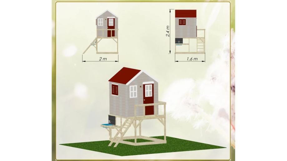 Kućica za igru izrađena je od visokokvalitetnog FSC certificiranog drva, izdržljiva je i ima vrlo stabilnu strukturu. Sigurnost vaše djece osigurana je visokokvalitetnom izradom i zaobljenim rubovima. Ova dječja kućica za igru ima unaprijed sastavljene i ojačane drvene ploče koje sprječavaju propadanje i smanjuju vrijeme sastavljanja. Kućica za igru nije prikladna za djecu mlađu od 3 godine! Preporučuje se godišnje prebojati kućicu kako bi izgledala kao nova. Sve informacije možete dobiti na broj: +385 99 349 4444 ili putem e-maila: david@findom.hr