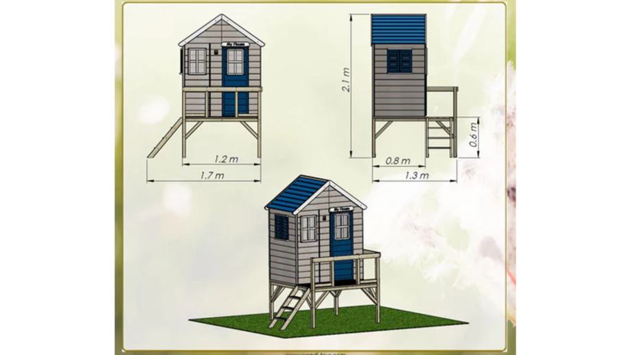 Sigurnost je od najveće važnosti, a ova kućica za igru izrađena je od vrhunskog prirodnog smrekovog drva s certificiranom bojom na bazi vode koja se koristi za bojanje. Sigurnost vaše djece osigurana je visokokvalitetnom izradom i zaobljenim rubovima. Preporučuje se ponovno bojanje jednom godišnje kako bi se održala kvaliteta. Sve informacije možete dobiti na broj: +385 99 349 4444 ili putem e-maila: david@findom.hr