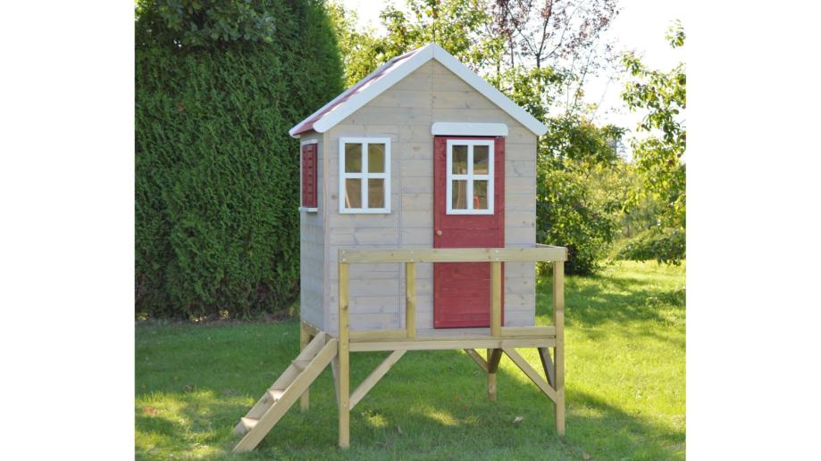 M25R Kućica za igru s platformom savršen je dodatak vašem vrtu za beskrajno kreativno i zabavno vrijeme igre. Ova kućica za igru dimenzija 120 x 80 cm prekrasna je, elegantna i moderna drvena kućica za igru koja djeci omogućuje otkrivanje i istraživanje vlastitog malog svijeta u udobnosti vlastitog dvorišta, bez obzira na vremenske uvjete. Izvrsna je za dječje aktivnosti, rođendanske zabave, pa čak i kao prostor za pohranu igračaka i pribora.
