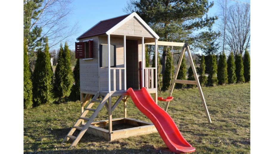 M9R-G Kućica s platformom, toboganom i jednom ljuljačkom + dodatak za