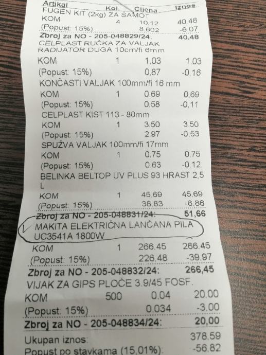 Nova motorna pila. Nož i lanac nisu stavljani.