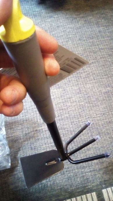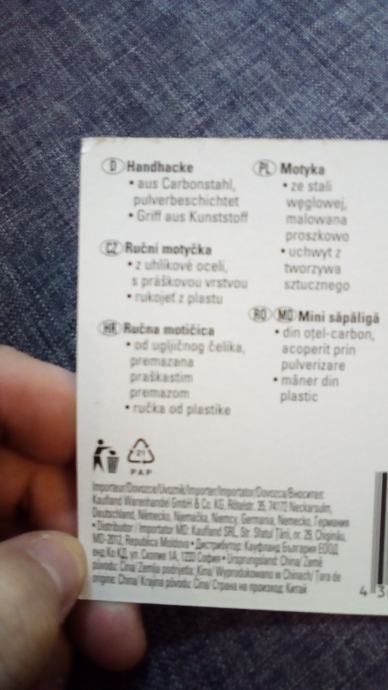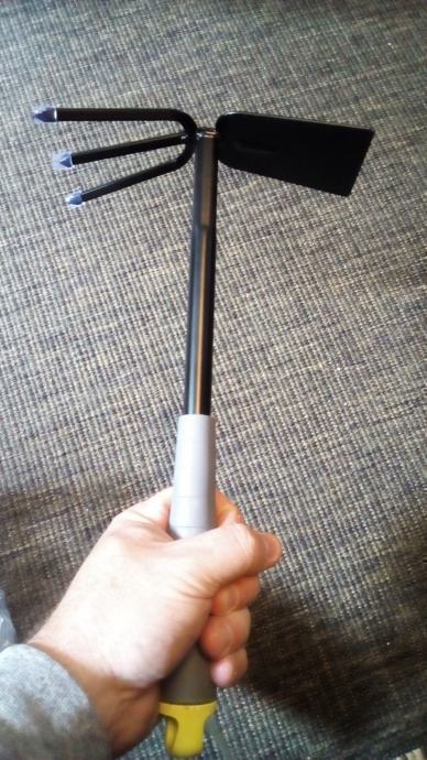 Mala ručna motika ima radnu širinu od 6,5 cm, tri zupca i oštricu izrađenu od visoko kvalitetnog čelika.Praškasti premaz osigurava duži vijek trajanja.