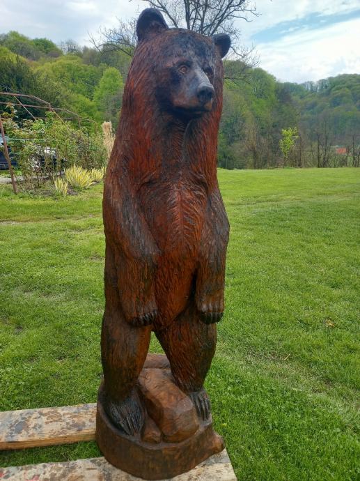 Unikatna drvena skulptura "Medvjed" izrađena iz hrasta.