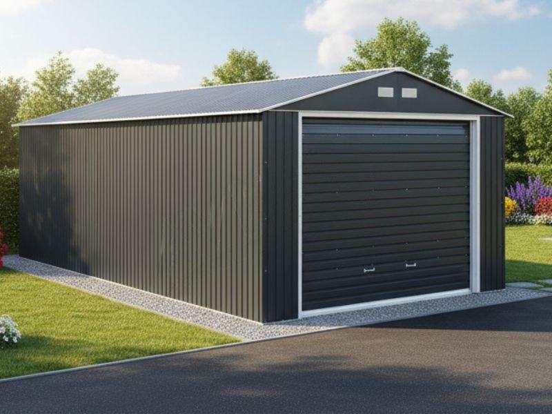 Metalna garaža je izdržljivo i dugotrajno rješenje za automobile, motocikle i vrtnu opremu. Ojačani metalni okvir, vruće cinčani elementi i rebrasta zidna konstrukcija osiguravaju izvrsnu otpornost na udarce i vremenske uvjete, a nisko održavanje štedi vrijeme na duži rok.