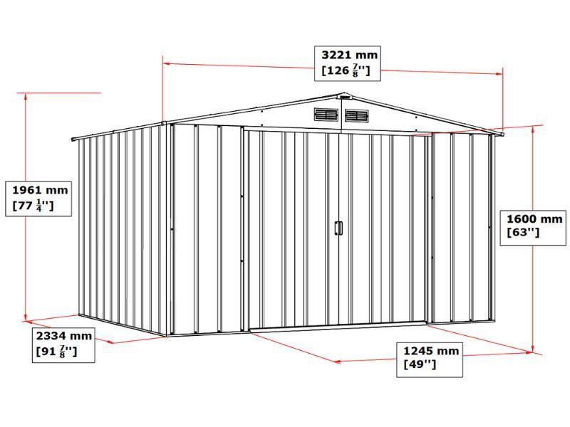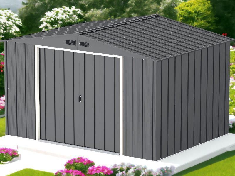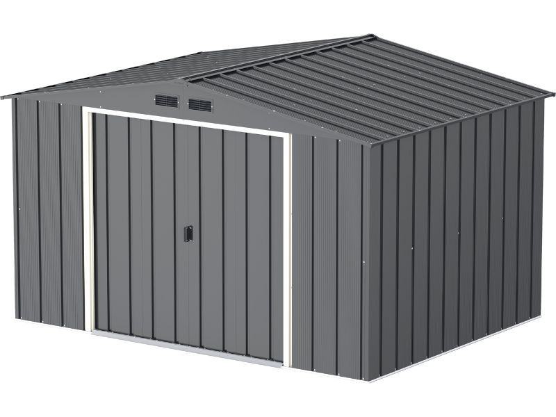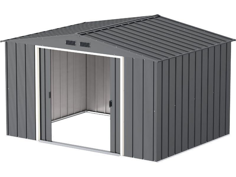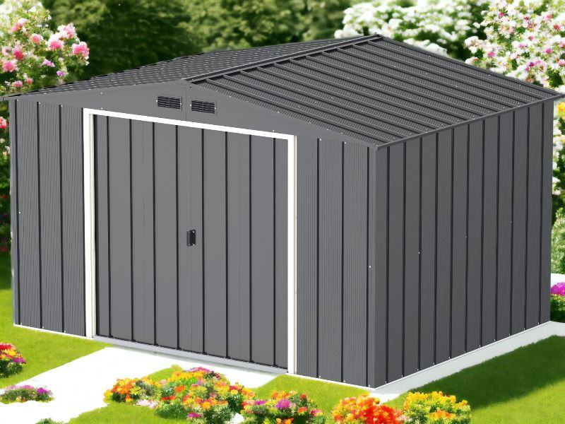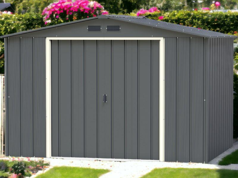 Ova metalna vrtna kućica pruža praktično i sigurno mjesto za pohranu raznih vrtnih alata, namještaja i pribora, štiteći ih od vanjskih utjecaja poput prašine, prljavštine i sličnog otpada. Klizna vrata omogućuju jednostavan ulazak. Materijal premazan prahom osigurava čvrstoću i dug vijek trajanja. Potrebna je montaža.