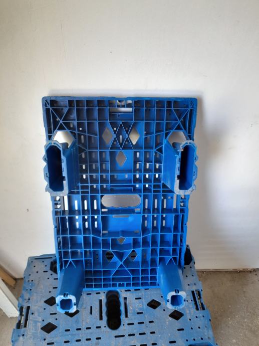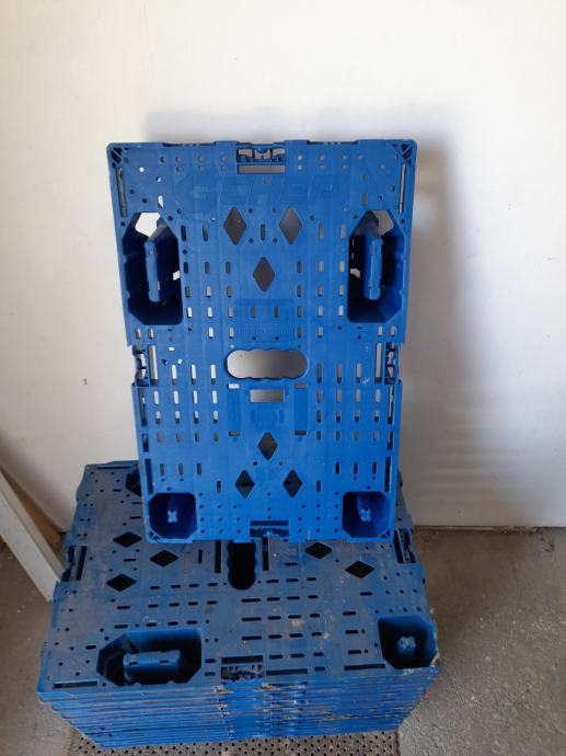 Prodajem mini plastične Chep palete dimenzija 60×40 cm, imam ih ukupno 25 komada slažu se jedna u drugu zauzimaju malo prostora i jako su izdržljive sve su plave boje. Cijena im je 5 eura po komadu.