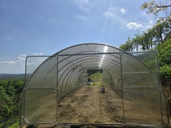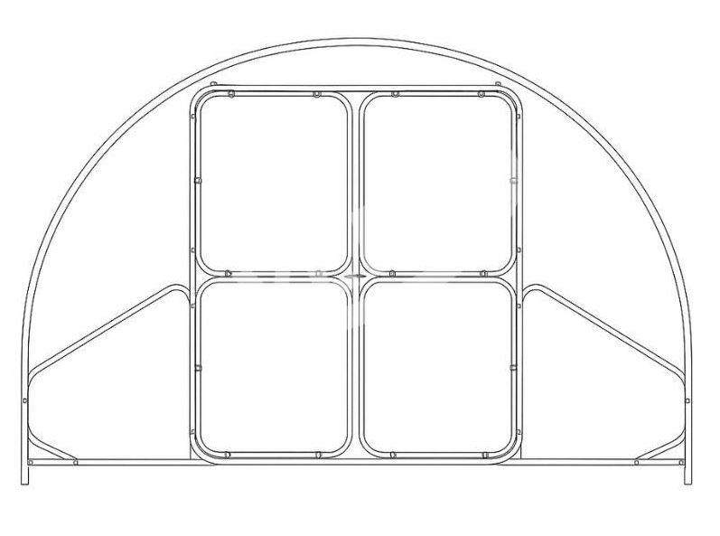 Visina - 230 cm, širina na dnu - 4 metra i razmak između lukova - 100 cm, što osigurava veliku strukturnu stabilnost. Zavareni okvir otporan je na zime i snježna opterećenja. Paket uključuje dvoja široka vrata i ventilacijske prozore za održavanje odgovarajuće klime i potpunog pristupa.