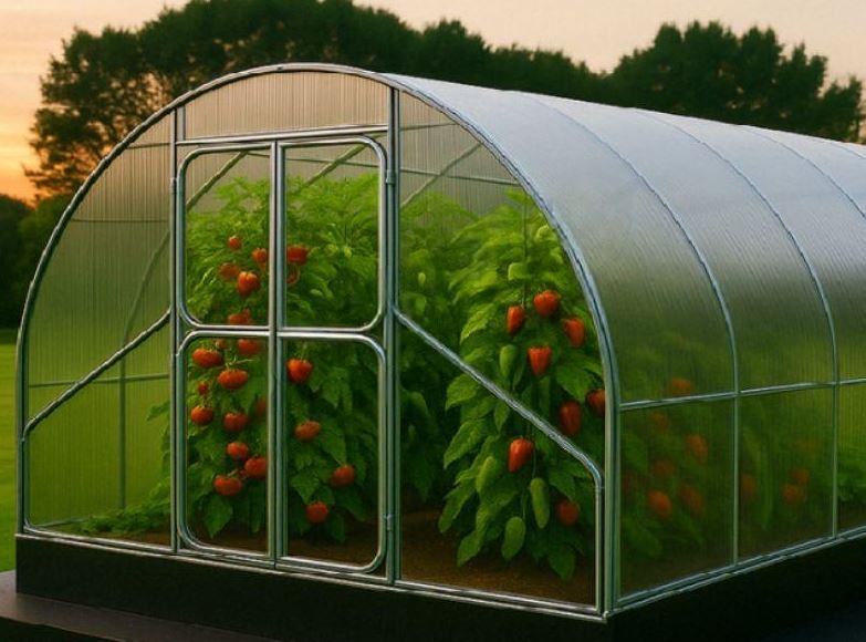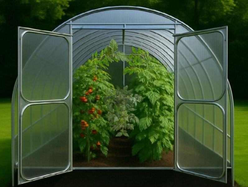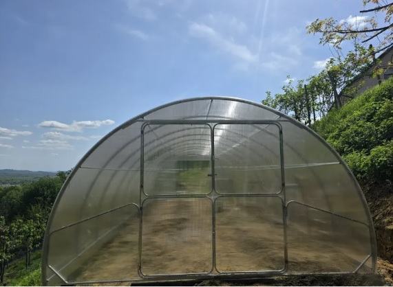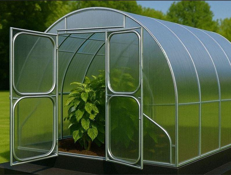 Može se pohvaliti čvrstim pocinčanim čeličnim okvirom s pocinčanim cijevima 40x20 mm i polikarbonatom 4/6 mm, koji pouzdano štiti biljke od vjetra, kiše i UV.