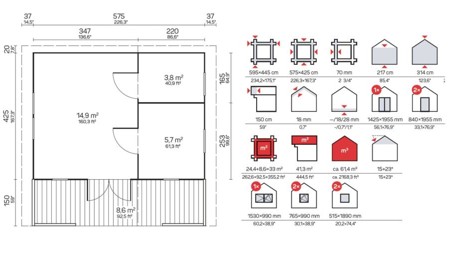 Set Maridinih drvenih kuća debljine 70 mm uključuje sljedeće: