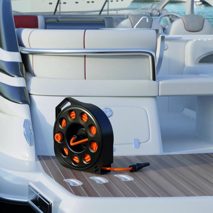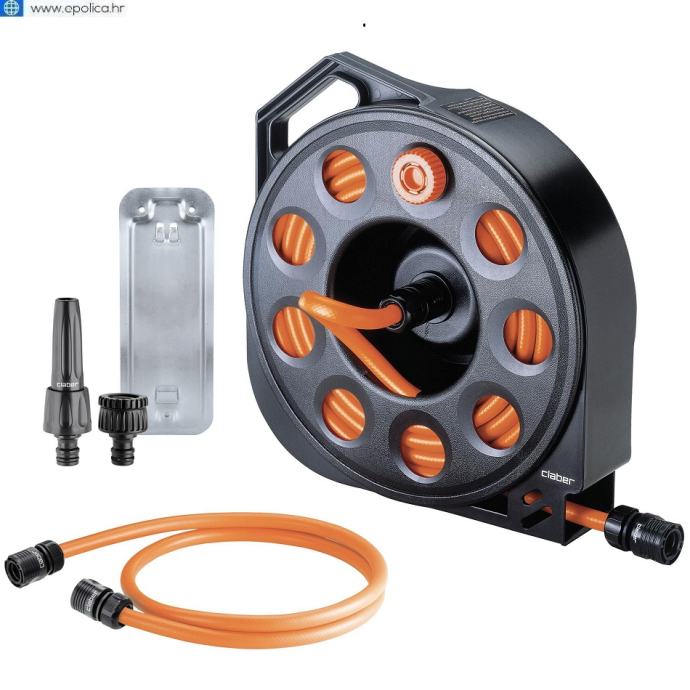 • Opseg isporuke: Uključuje 15 m okruglog crijeva promjera 15 mm, kompaktno, lagano kućište isporučuje se s automatskim Quick-Click spojnicama, produžnim crijevom od 1.5 m, mlaznicom za prskanje, te zidnim nosačem koji omogućuje praktično vješanje motalice na zid.
