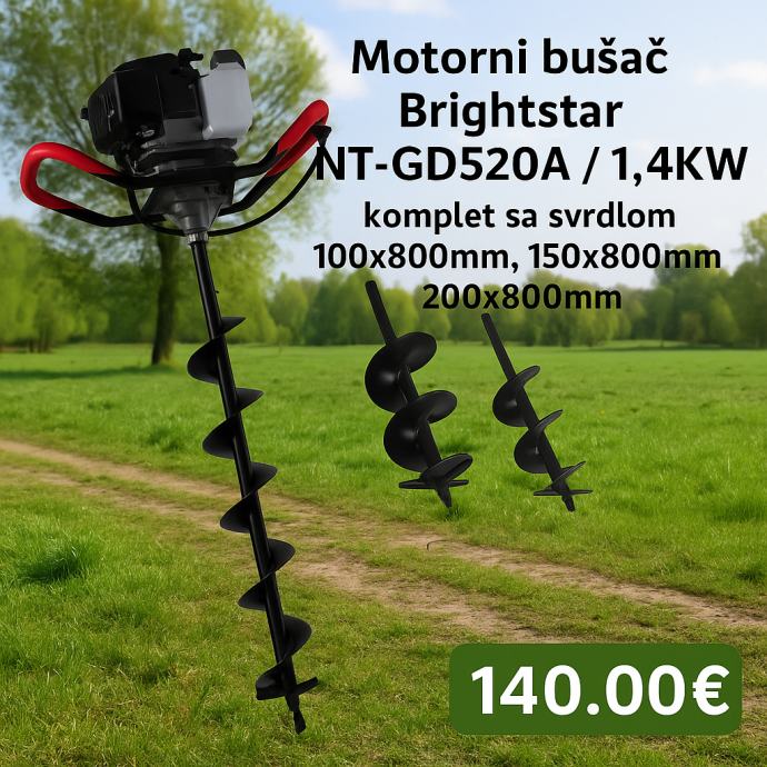 Investirajte u Brightstar bušač rupa NT-GD520A i osigurajte si alat koji će vam olakšati zemljane radove i poboljšati produktivnost na vašoj gradilišnoj lokaciji ili plantaži.