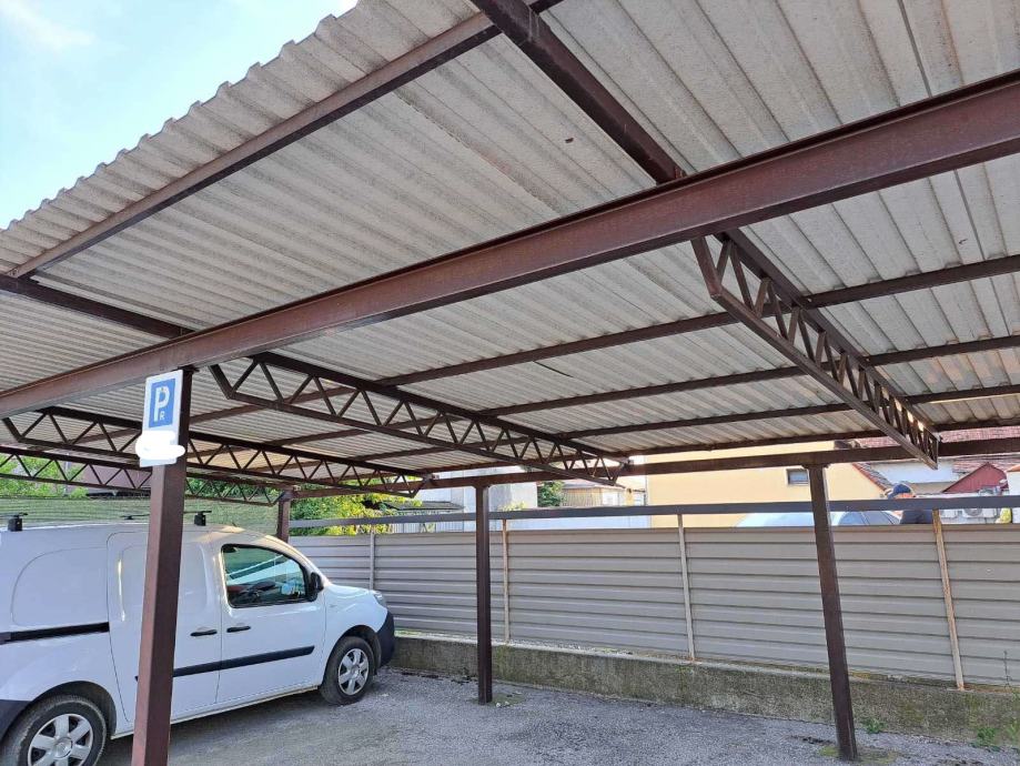 Prodaje se nadstrešnica za 4 vozila. Metalna konstrukcija ( rastavlja se i sklapa se pomoću šarafa ) . Širina je 10m, dubina je 5,30 m.