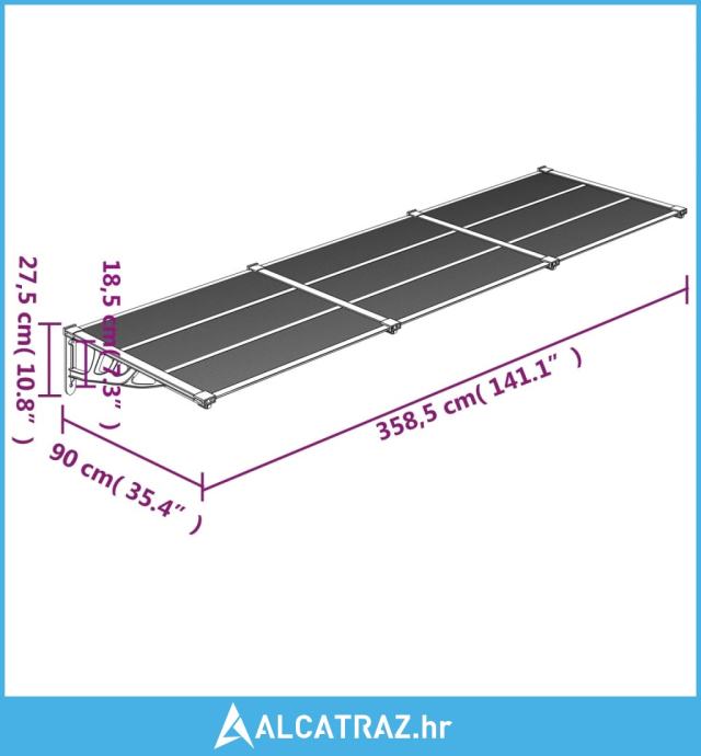 Nadstrešnica za vrata crna i prozirna 358,5x90 cm polikarbonat - NOVO