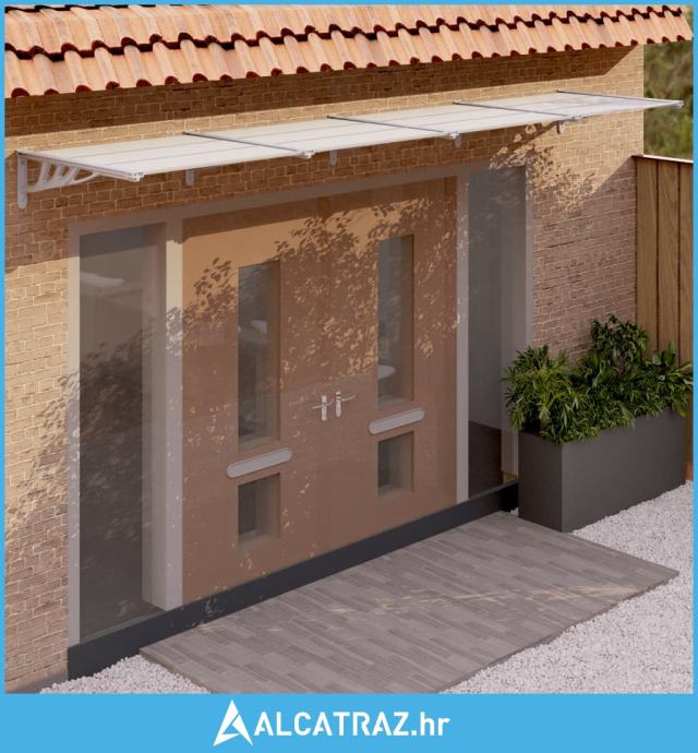 Ova izuzetna nadstrešnica za vrata predstavlja jednostavno rješenje za zaštitu vaših vrata od kiše, snijega, tuče i drugih loših vremenskih uvjeta.