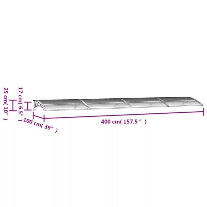 NADSTREŠNICA ZA VRATA SIVA 400X100 CM POLIKARBONAT - Novo zapakirano