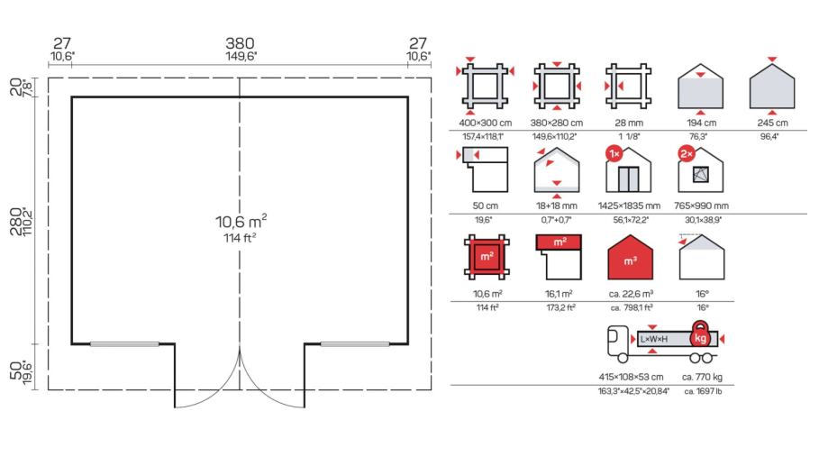 Sve drvene kućice od 28 i 40 mm, dječje kućice za igru, nadstrešnice, ljetne kućice i garaže sadrže standardni set: vrata, prozore i opremu za pričvršćivanje koji čine montažu kućica jednostavnom i brzom.