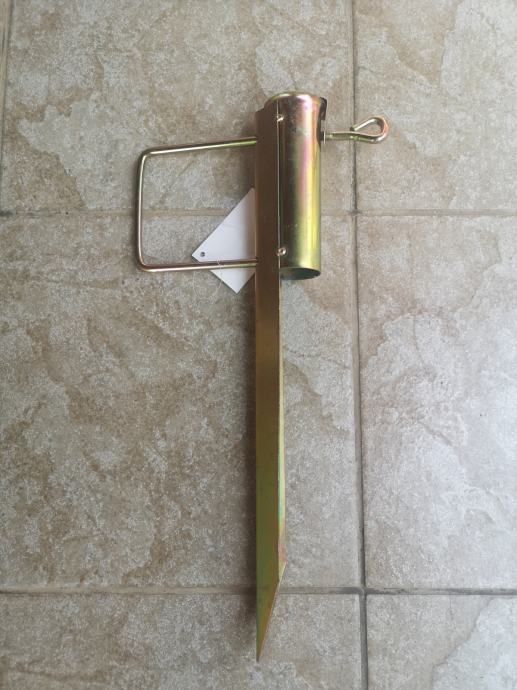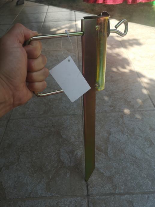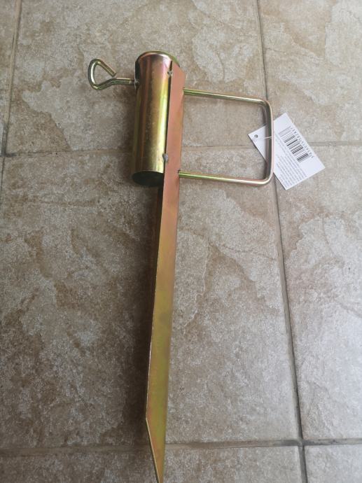 Rupa za cijev suncobrana se može smanjivati tj.stiskati sa vijkom sa strane tako da stanu i tanje cijevi.Sa strane ima i ručku za prihvat radi lakšeg ukucavanja i vađenja iz tla.