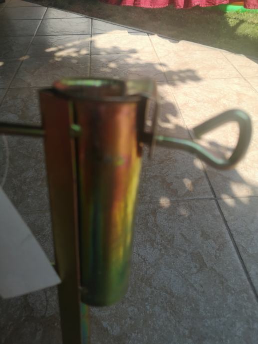 Na prodaju novi metalni nosač za suncobran visine 43cm i promjera rupe 4,5cm.