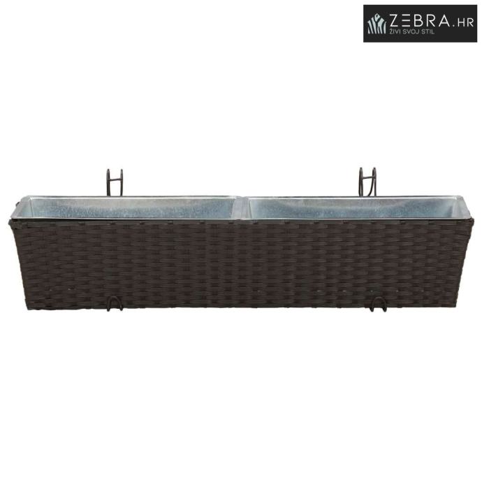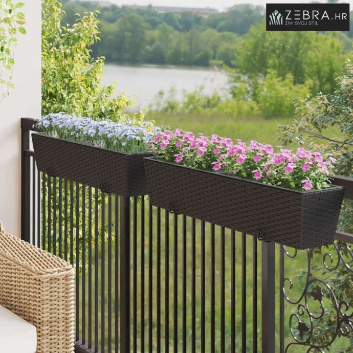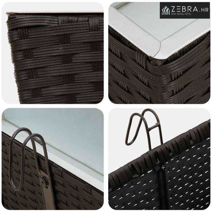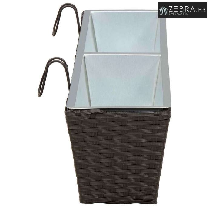 Ovaj stilizirani balkon s cvjetnjakom, namijenjen vanjskom korištenju, bez problema kombinira moderni minimalizam s funkcionalnim izgledom koji podsjeća na ratan. Njegov trapezoidni oblik i prirodni uzorak ratana donose chic izgled koji će uljepšati svaki balkon ili terasu.