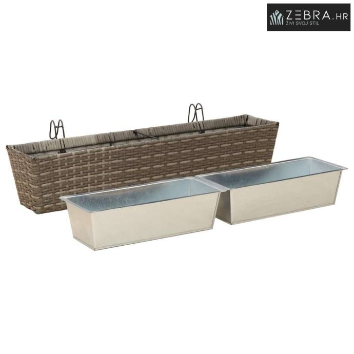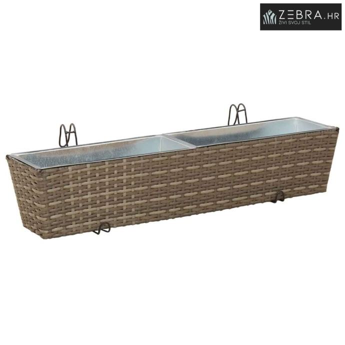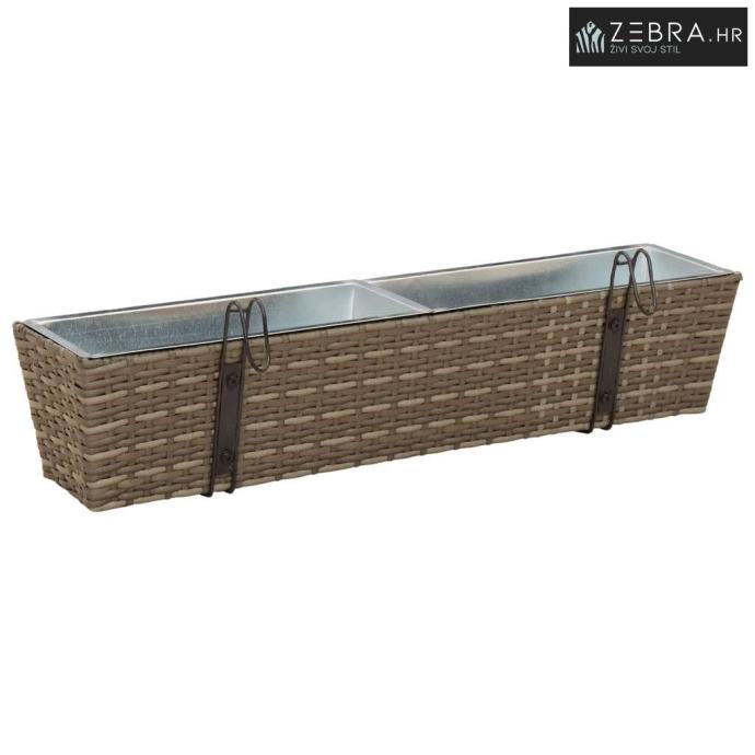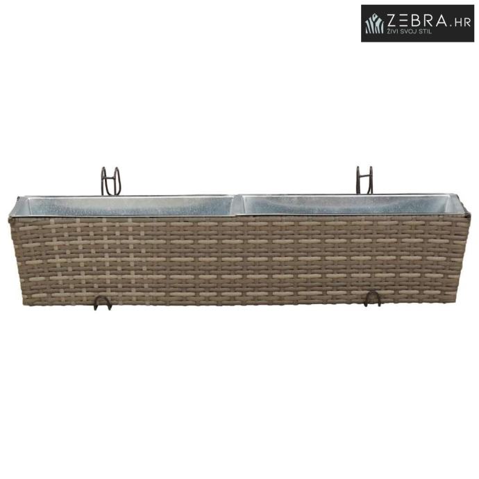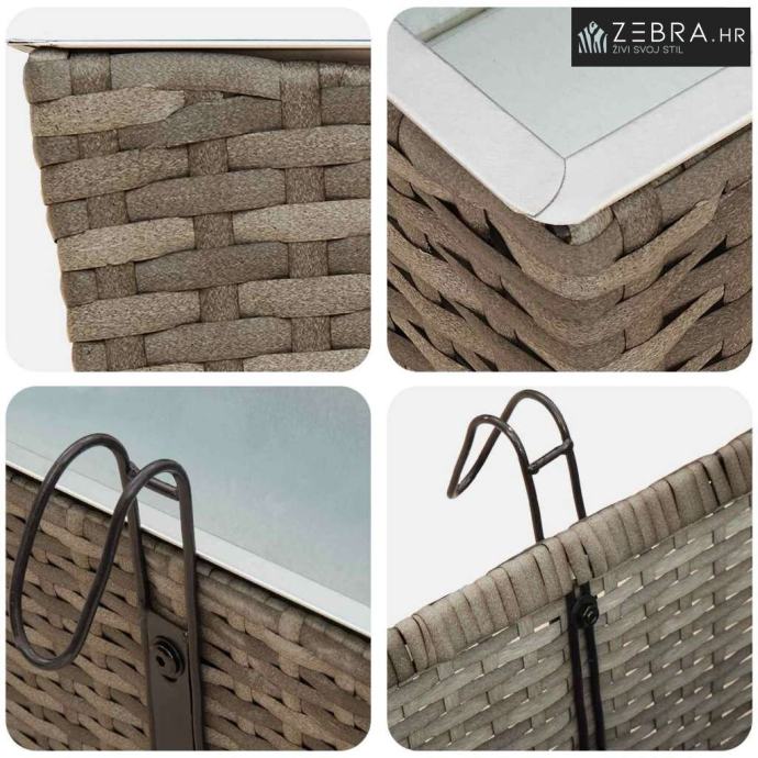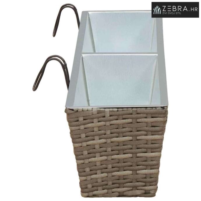 Ovaj stilizirani balkon s cvjetnjakom, namijenjen vanjskom korištenju, bez problema kombinira moderni minimalizam s funkcionalnim izgledom koji podsjeća na ratan. Njegov trapezoidni oblik i prirodni uzorak ratana donose chic izgled koji će uljepšati svaki balkon ili terasu.