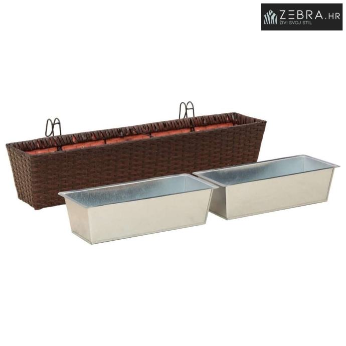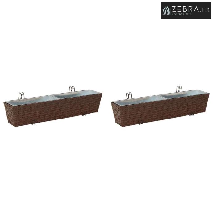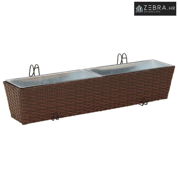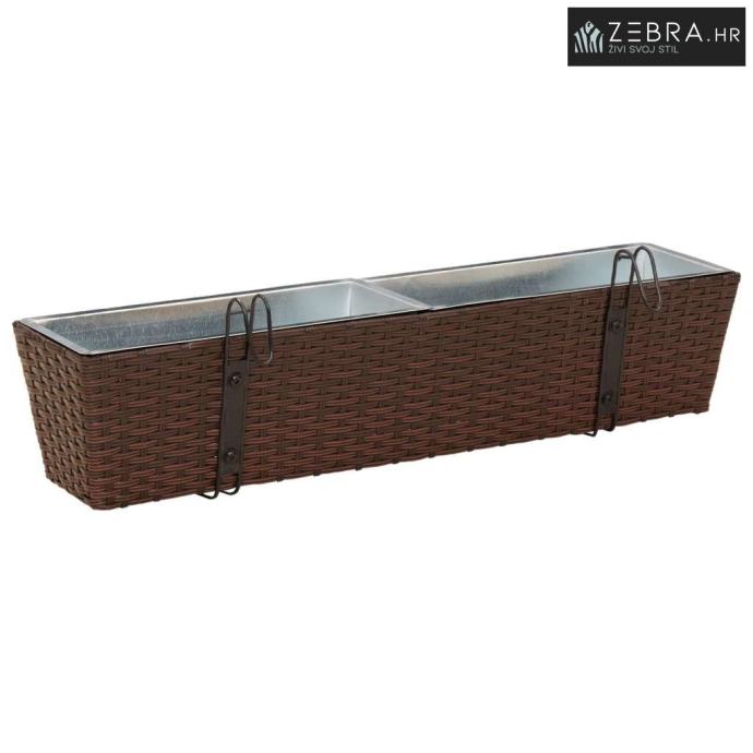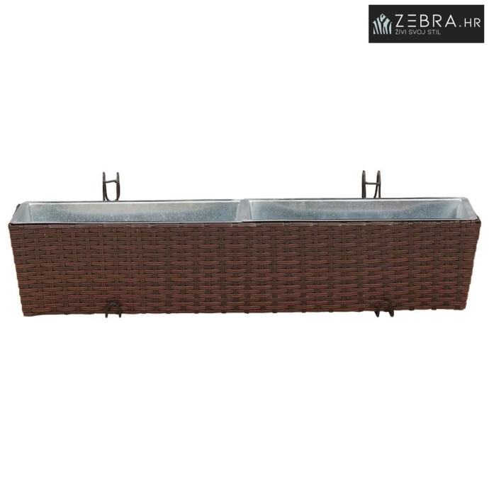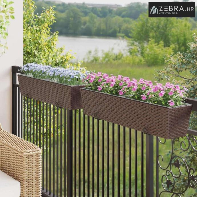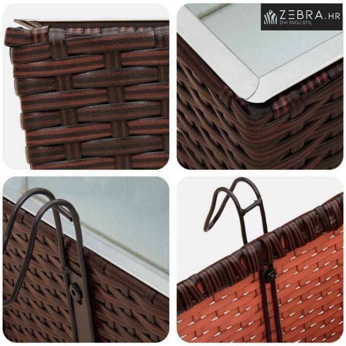 Ovaj stilizirani balkon s cvjetnjakom, namijenjen vanjskom korištenju, bez problema kombinira moderni minimalizam s funkcionalnim izgledom koji podsjeća na ratan. Njegov trapezoidni oblik i prirodni uzorak ratana donose chic izgled koji će uljepšati svaki balkon ili terasu.