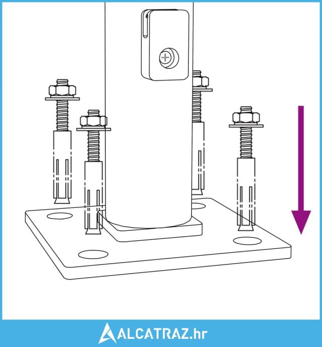 - Dimenzije podne prirubnice: 80 x 80 x 4 mm (Š x D x Deb.)