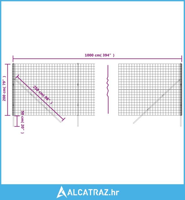 Ograda od žičane mreže zelena 2 x 10 m od pocinčanog čelika - NOVO