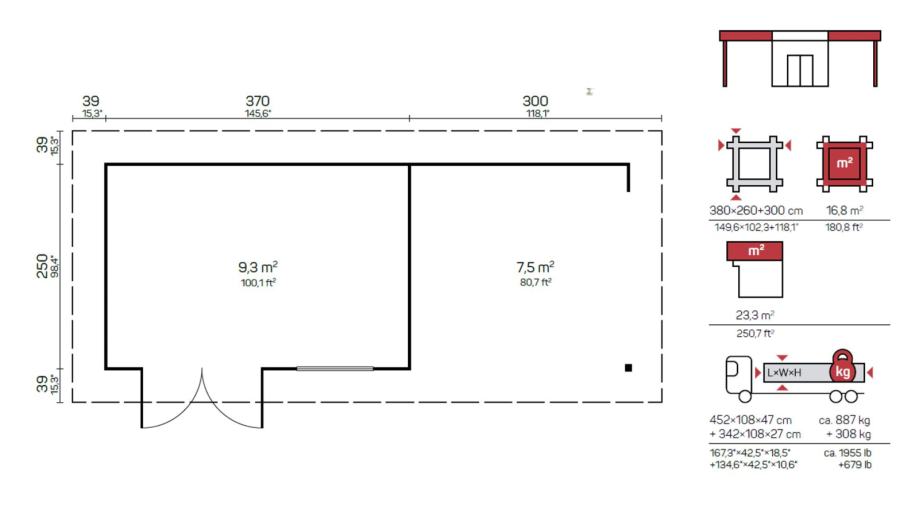 Vanjske dimenzije (širina x dužina): 380 x 260 cm + 300 cm