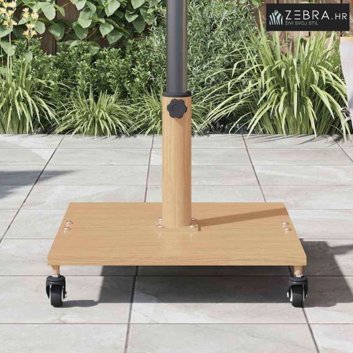 Čelična konstrukcija: Ova baza suncobrana je izrađena od visokokvalitetnog čelika, koja pruža pouzdanu stabilnost i otpornost na razne vremenske uvjete. Također je izdržljiva i idealna za dugotrajnu upotrebu. UV otpornost: S dizajnom koji odbija UV zrake, ova baza pomaže u očuvanju njenog izgleda i performansi, što je odlično za vruće ljetne dane. Praktičan oblik: Četvrtasti dizajn dodaje moderan izgled, savršeno se uklapa u svaki minimalizam i nudi stabilnost kako bi se prevencija prevrtanja ili ljuljanja povećala. Zahtevi za sastavljanje: Lako se sastavlja uz pomoć odvijača i dviju osoba, omogućujući da bude spremna za korištenje u kratkom roku. Lako održavanje: Redovito brisanje suhom krpom pomaže održavanju čistoće, uz izbjegavanje oštrih kemikalija da bi se osigurala dugotrajnost. Boja: Svjetlo drvo