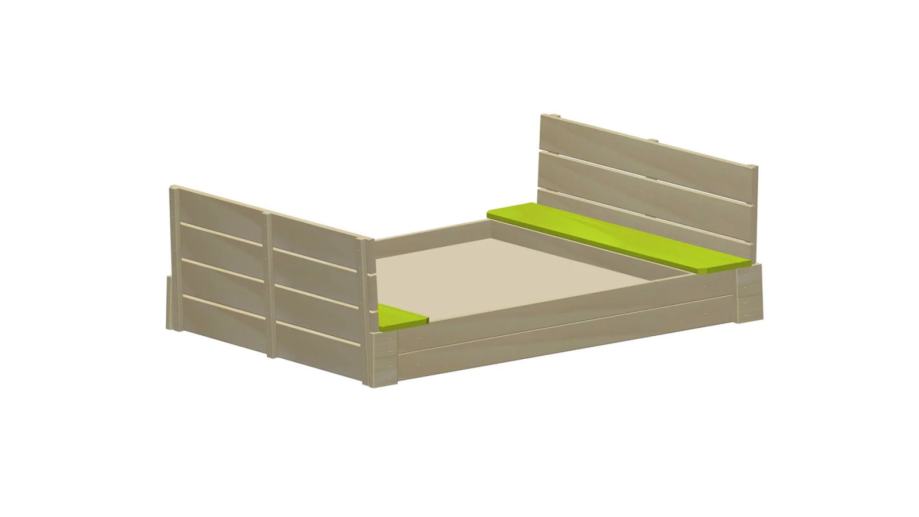 Pješčanik je kompaktan i ima sve što vam treba. Uključena su dva drvena poklopca koji bi trebali zaštititi pijesak od kiše ili lišća nakon zabave. Tijekom upotrebe, drveni poklopci mogu se koristiti kao nasloni za sjedenje.