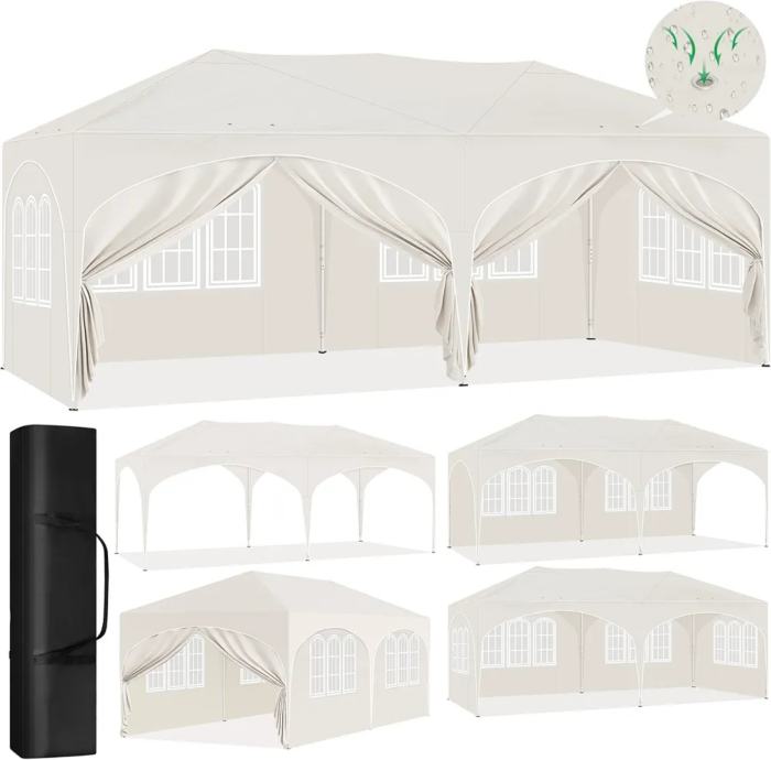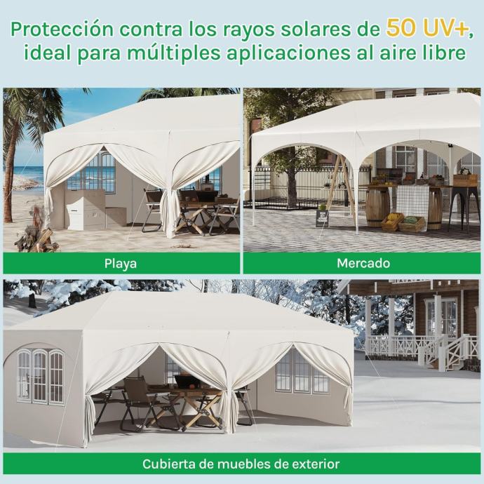 Sjenica 3 x 6 m Sklopiva Sjenica na Rasklapanje Vodootporna Zimska Sjenica za Roštilj Stabilna Vrtna Sjenica s Bočnim Stjenicama Prozori Torba za Kampiranje Plaža bež boja