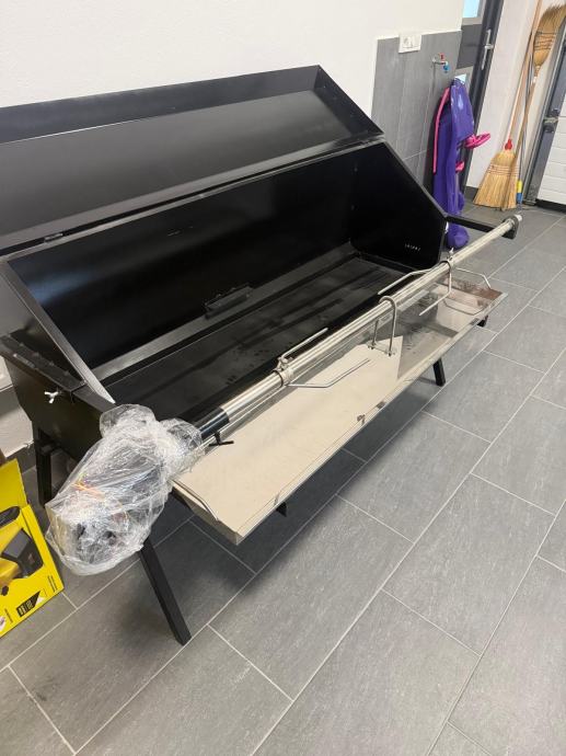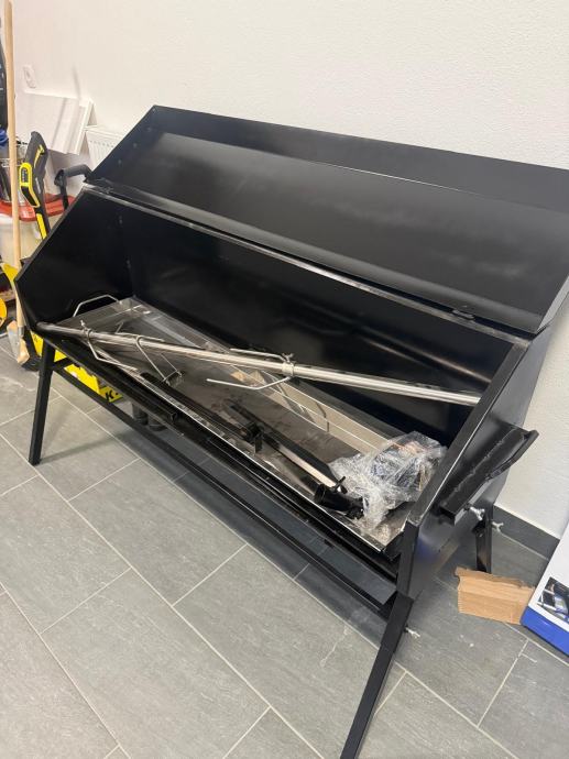U kompletu još jedan ražanj za pečenje rolovanog mesa ili pilića sa vilicama..