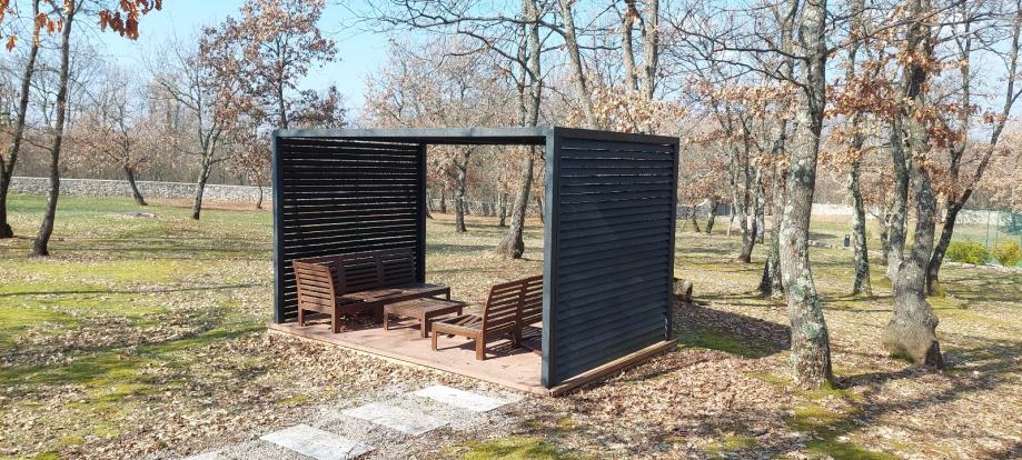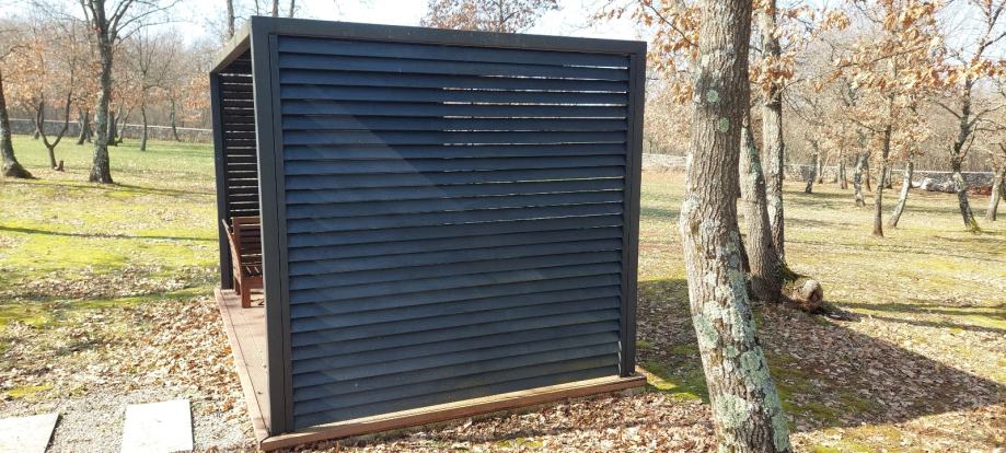 Prodajem rabljenu pergolu dimenzija 4m x 2,5m u tamnoj, antracit boji s efektom. Konstrukcija je solidna i stabilna, s lameliranim bočnim stranicama koje pružaju zaštitu od vjetra i sunca. Pergola dolazi s drvenom podnom platformom. Odličan dodatak svakom vrtu ili okućnici.