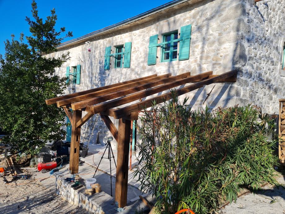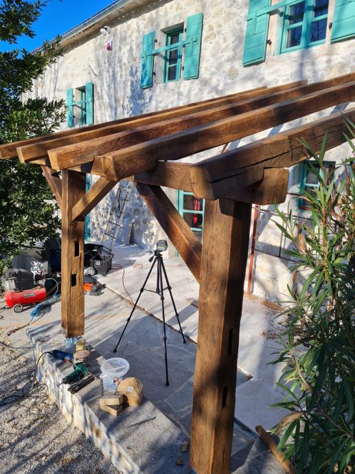Izrada i montaža pergole od stoljetne hrastove građe - unikatno.
