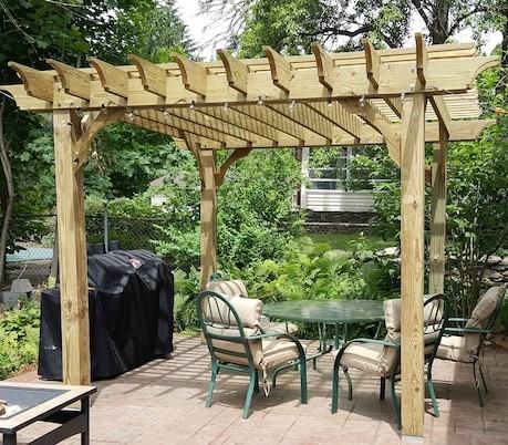Prodajem drvenu pergolu dimenzije 3m x 3m . Sastoji se od četiri grede 10*10, 10*12, povezivih daski te poprečnih daski razmaka 30 cm.