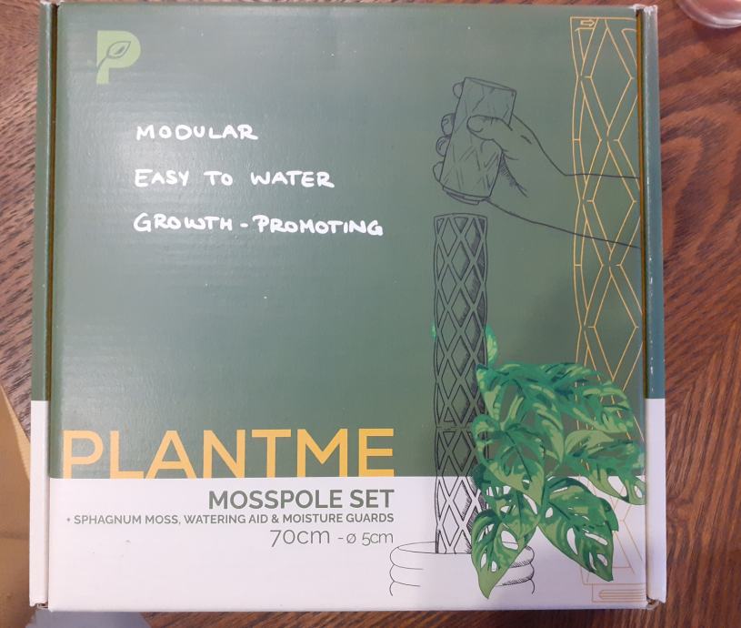 PlantMe Moss Pole Set. Štap za podršku biljaka poput monstera, filodendrona i ostalih biljaka penjačica koje trebaju podršku za uspravan rast. Uz stalak koji čini cijelukupni set stabilnijim.