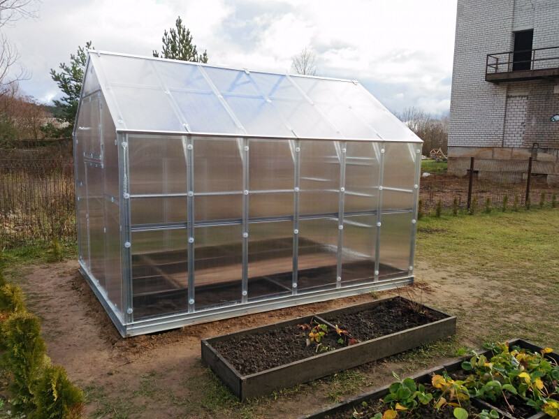 Set sadrži: Robusne pocinčane čelične profile debljine 1 mm; širina temelja 100 mm; svi potrebni pričvrsni elementi - vijci, brtve; gumene brtve; polikarbonat 6 mm, već izrezan na tražene dimenzije i sa 10 godina garancije; šarke za vrata i prozore. Detaljne upute za sastavljanje. Razmak između lukova je 50 cm.