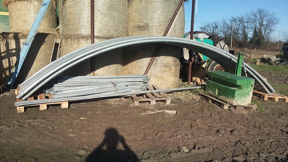 plastenik novi,9m širok,28m dugačak,4,5m visok sa svim elementima bez folije,cijevi podsjenčani lim 2 cola,sa držačima folije.